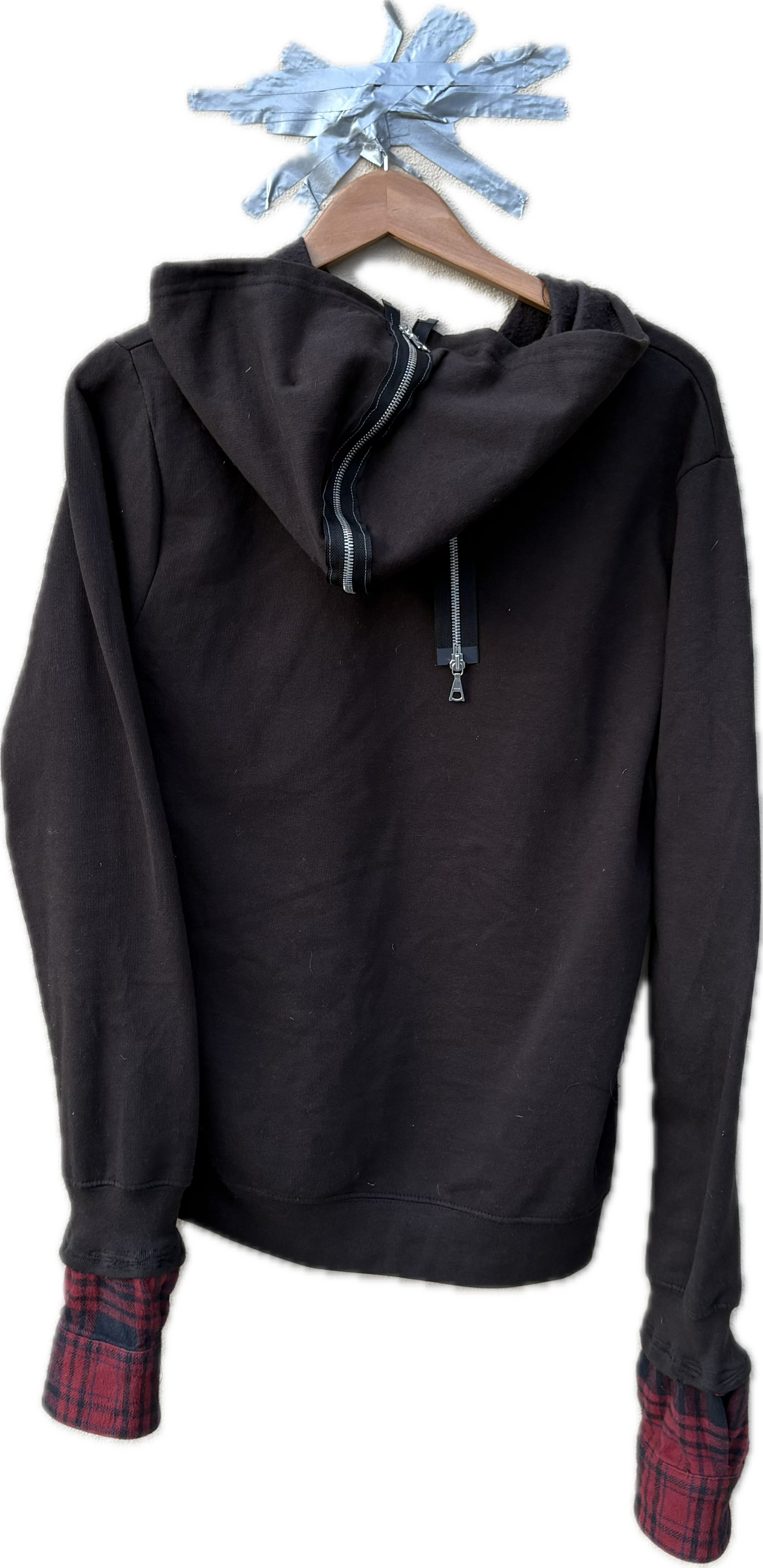 1:1 garment, hand constructed flannel hybrid hoodie with zip split hood. Wash inside out on delicates/cold wash.