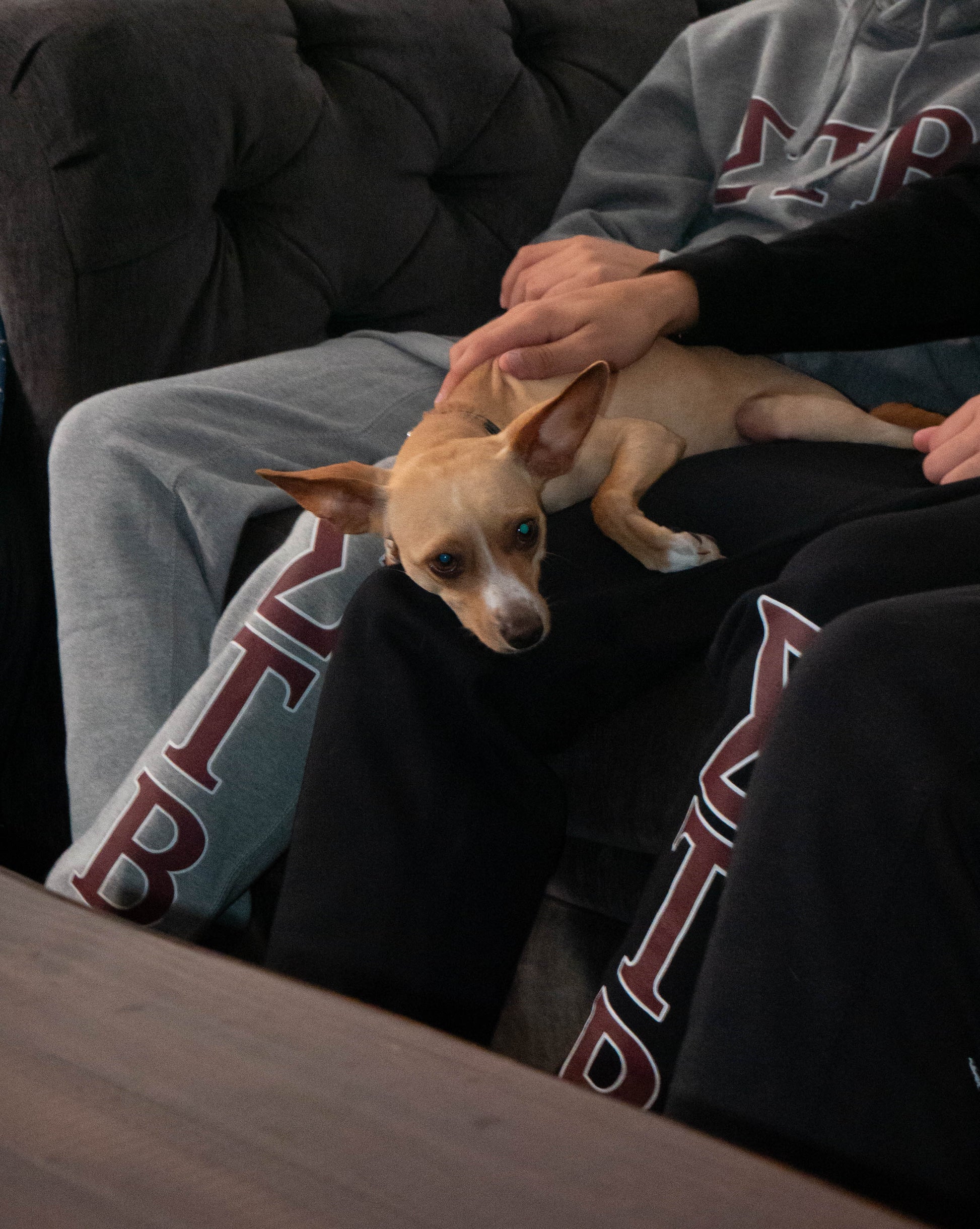 Large front DTG print, new "ΣTΒ" (Sigma Tau Beta) logo as a play on timeless Fraternity/Sorority hoodies and tracksuits.